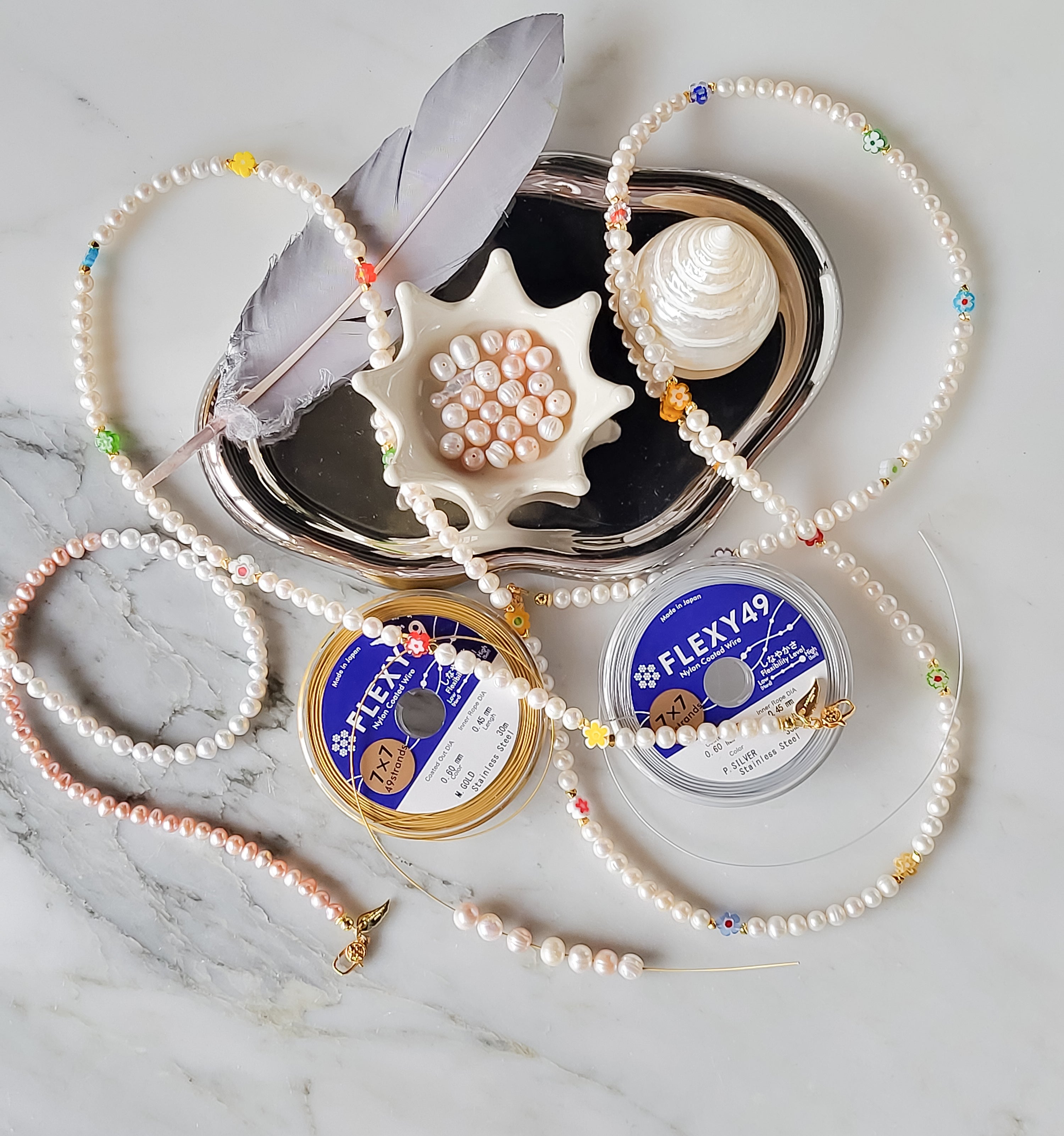 Pearl-Flower Glass Bead Charm/ Bracelet